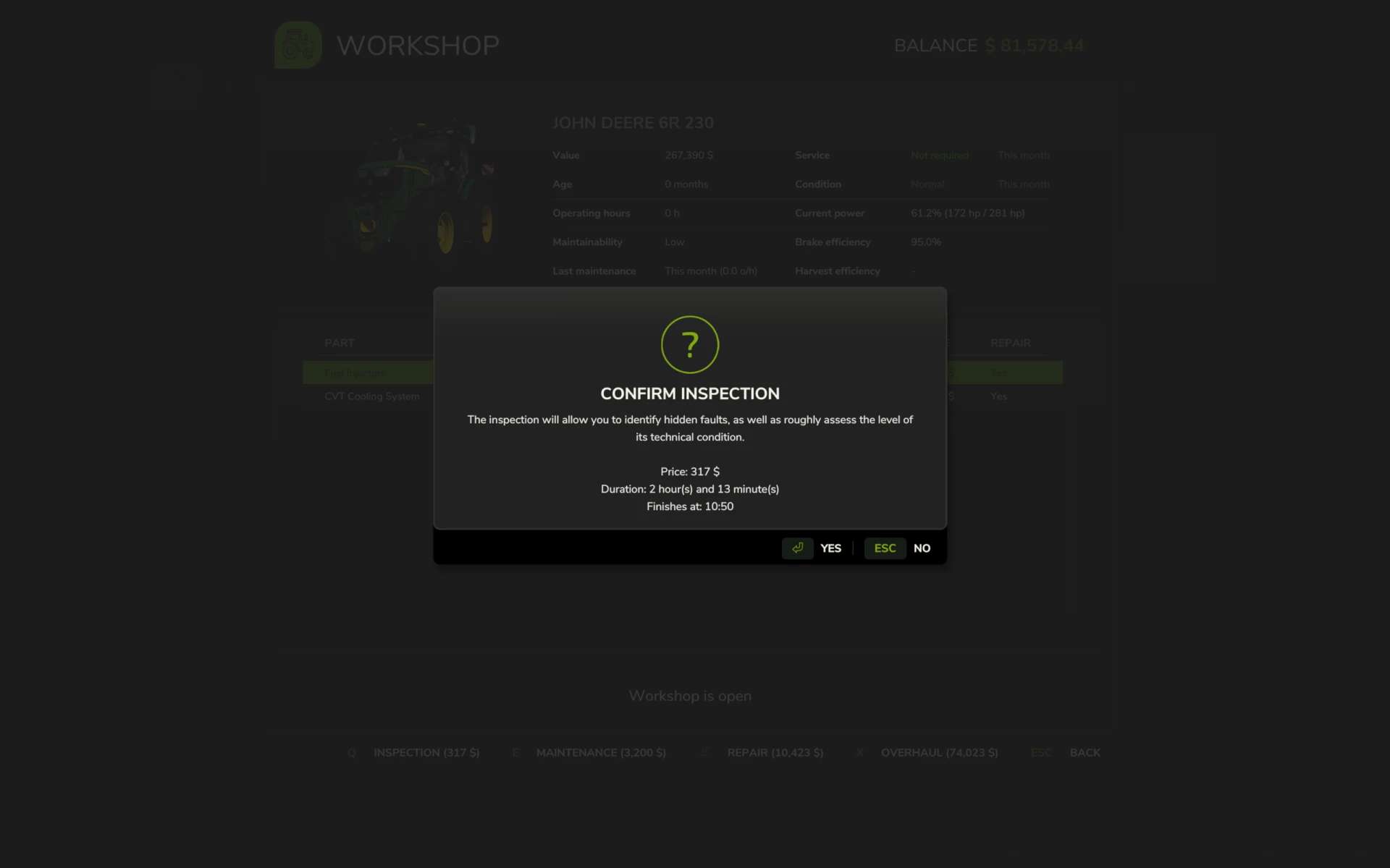 All operations require time (in-game) and money, with the cost depending on the vehicle’s price, age, and maintainability.