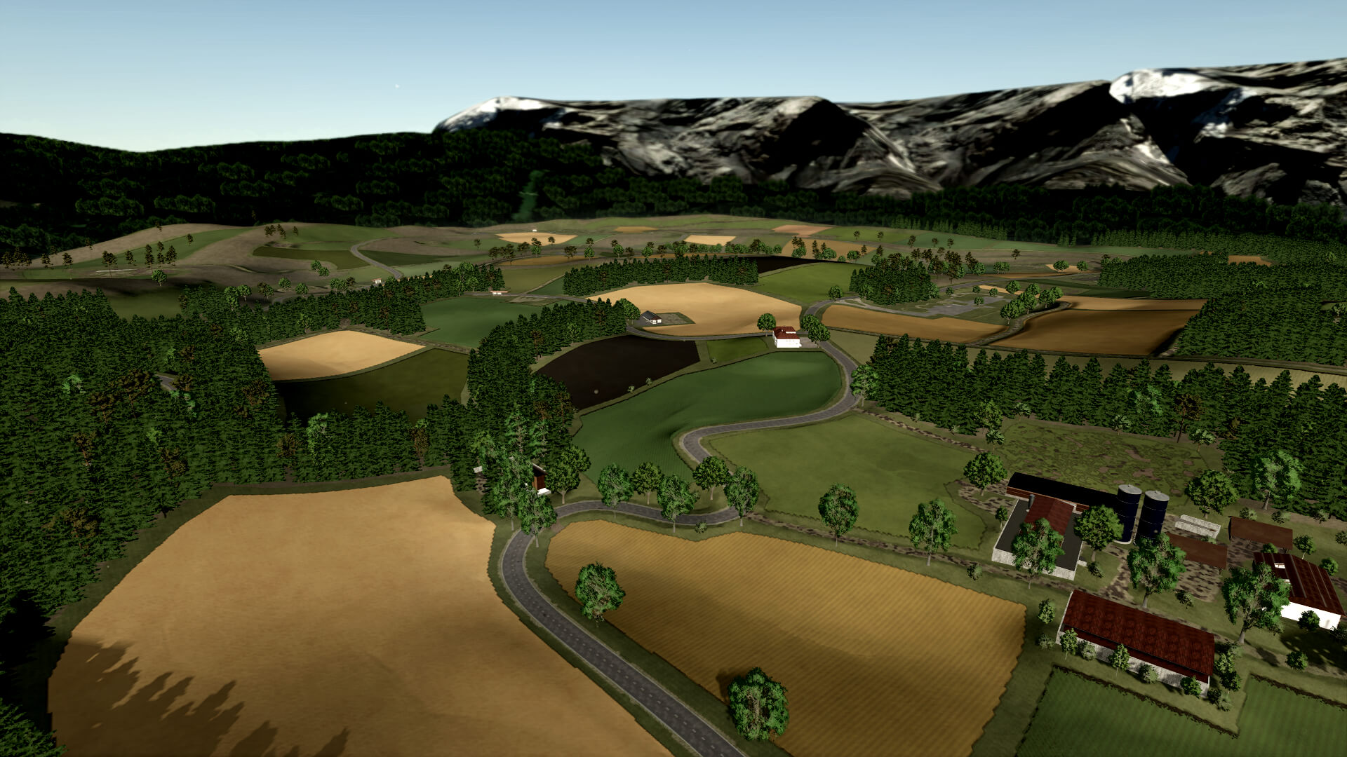In the Alpine Foothills map, you’ll find 8 different farms, a few additional shelters, and a cowshed that can be purchased.
