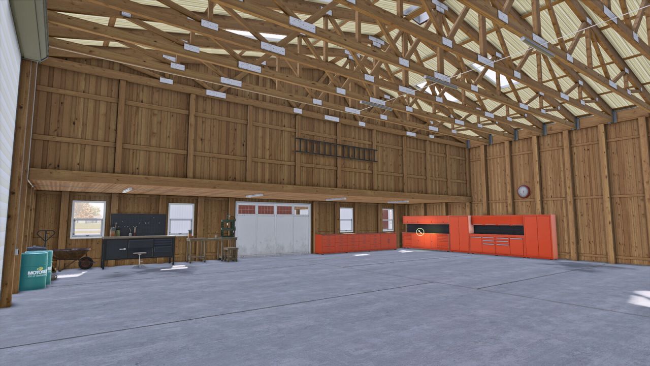 Here You can store grains or vehicles. It has lightning inside and outside.
