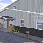 American hall with workshop. Building has three roller doors, one small double and one person doors.