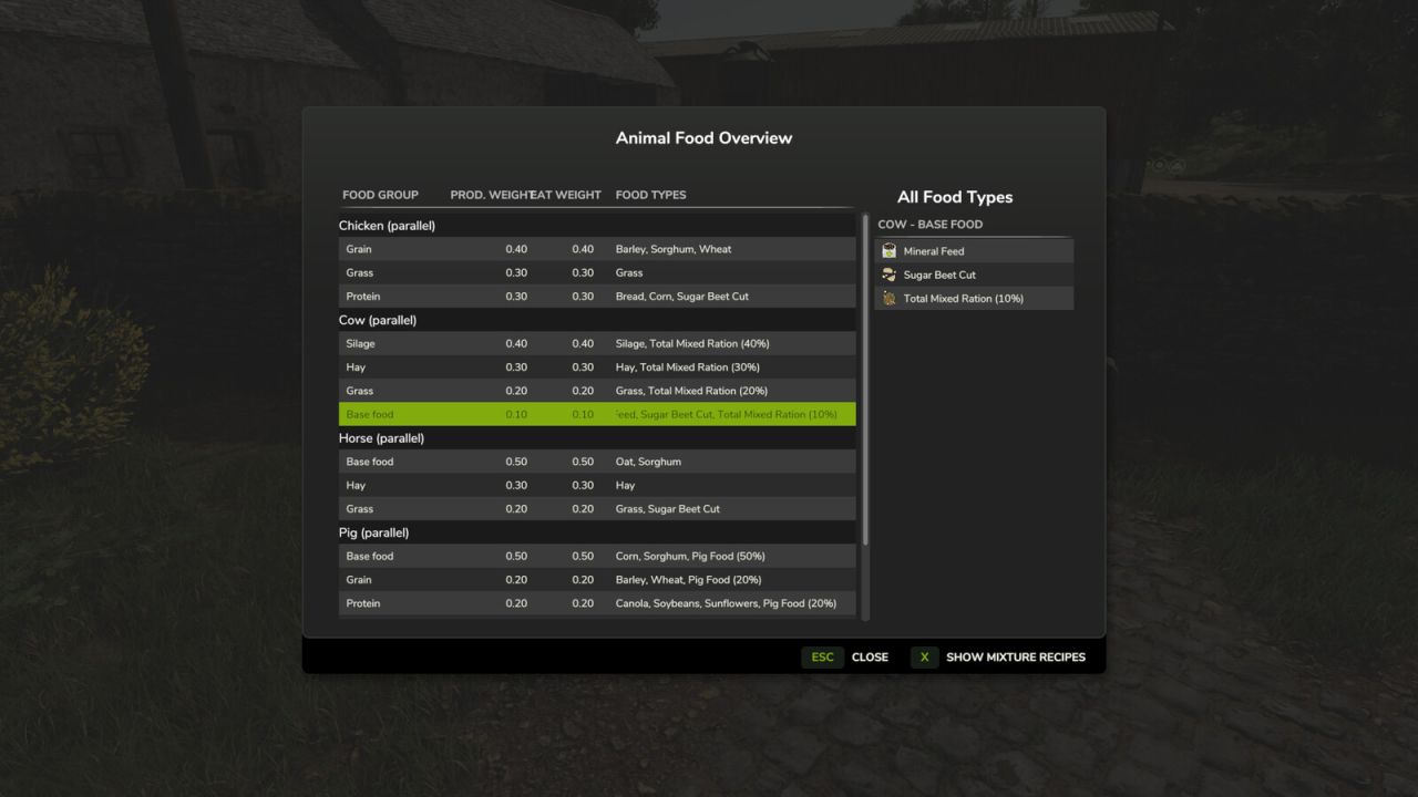 Screenshots created with the use of the FS25_AnimalFoodOverview mod by Fetty42 for better understanding.