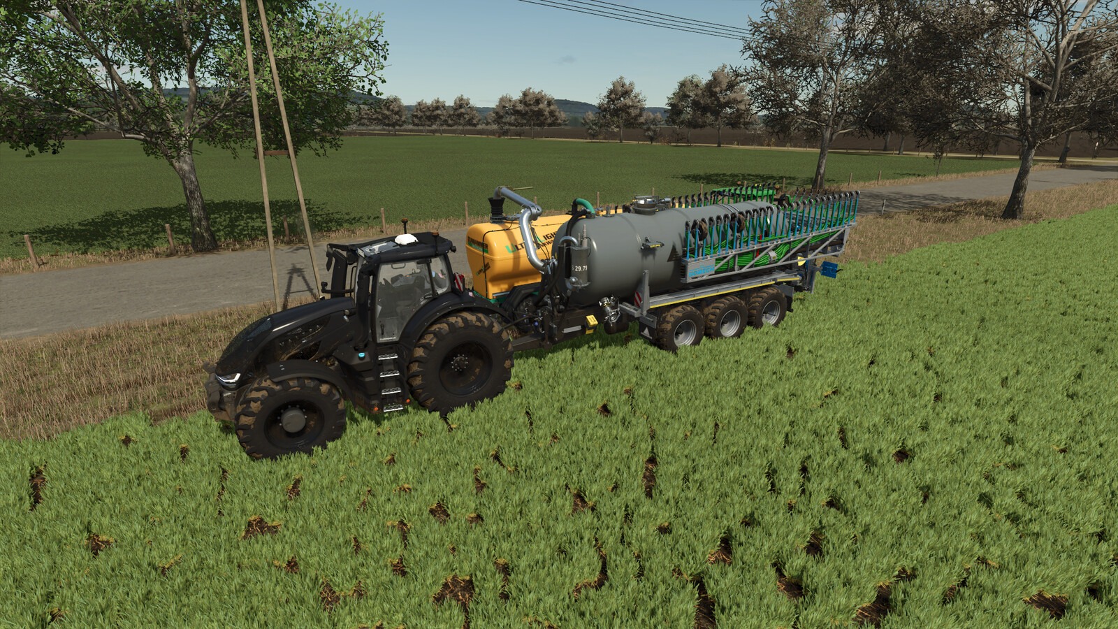 Fixed slurry tank missing spray effect for liquid manure.