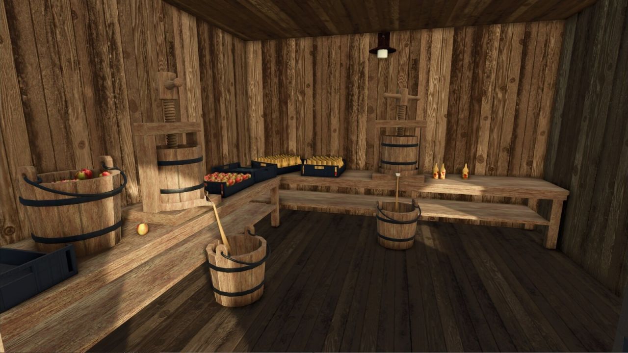 You can make apple juice from the apples in the small, walk-in juice production facility.
