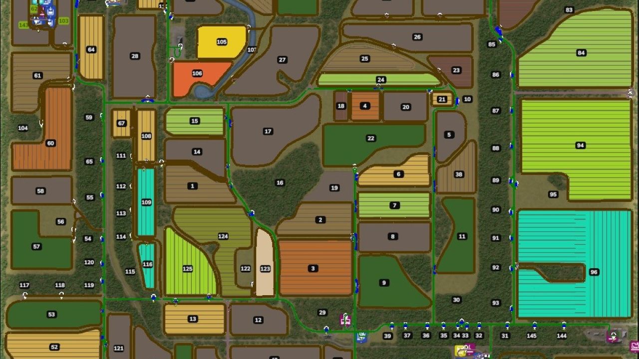 I’ve been busy creating an autodrive course for Back Roads Country 4X. All fields, forests, and meadows have been mapped out, as well as a few sales points and rail loading