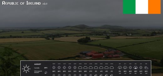 Farms, farmland, building plots/pastures, cows, goats, sheep, and all farm traders with sales and purchase points, forests, and water loading.