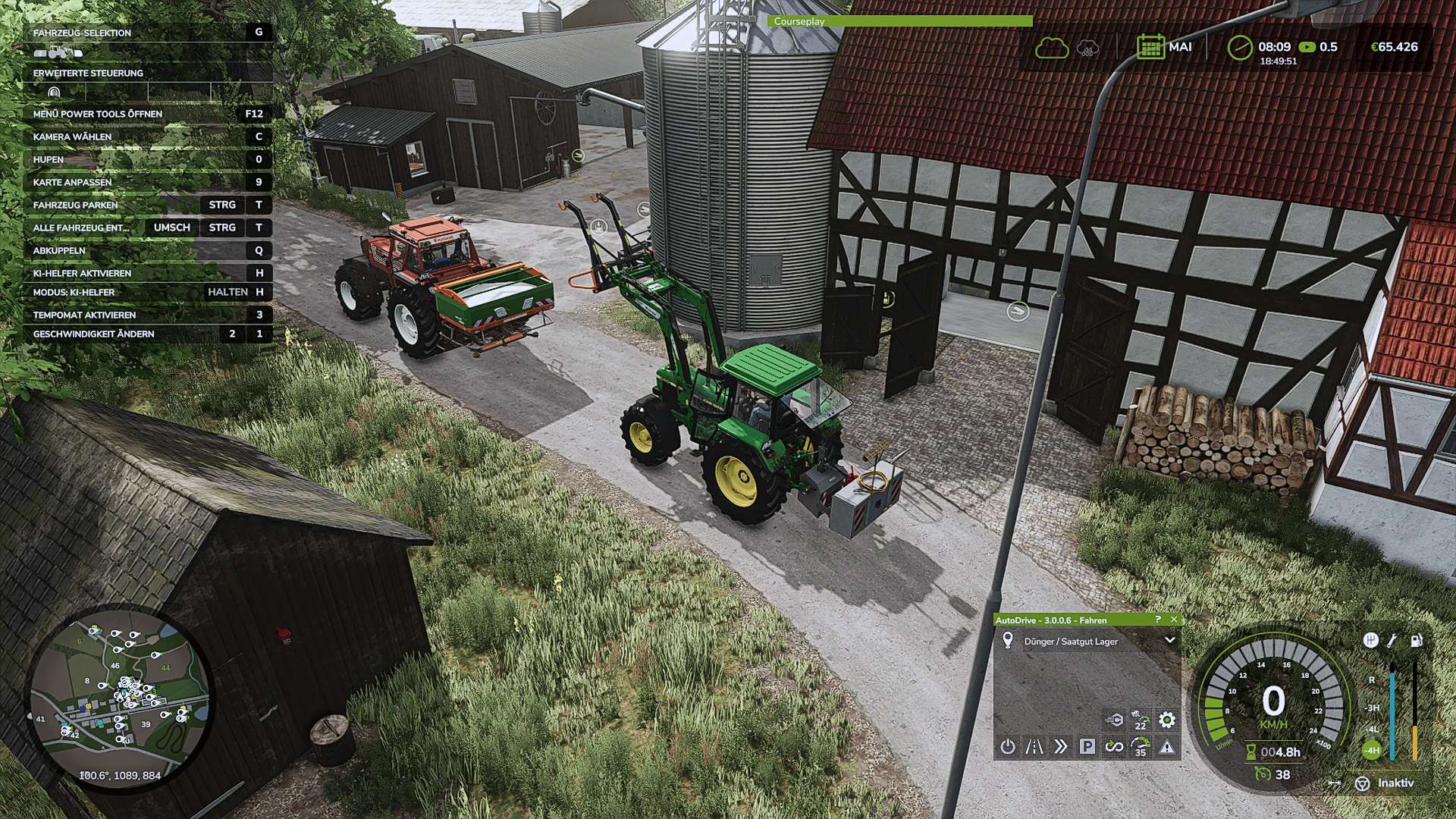 Seed/fertilizer, which is the pallet/big pack storage. ONLY a stopping point. You still have to load it yourself with a front loader. The same applies to the section “Loading silage bales on the farm.” (see screenshot)