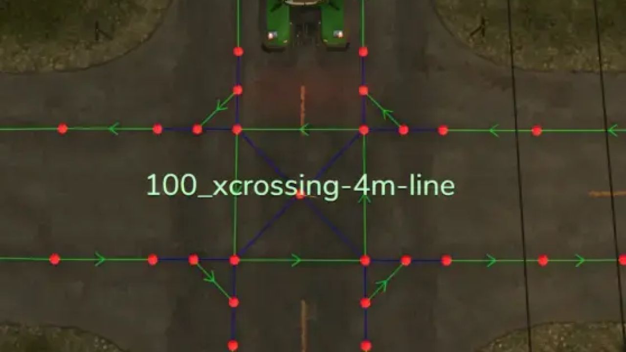If you leave the construction menu after placing them, the waypoints of an AD intersection are created with a destination point in the middle. You can then connect these to your route network. The yellow cross can be sold again via the construction menu.