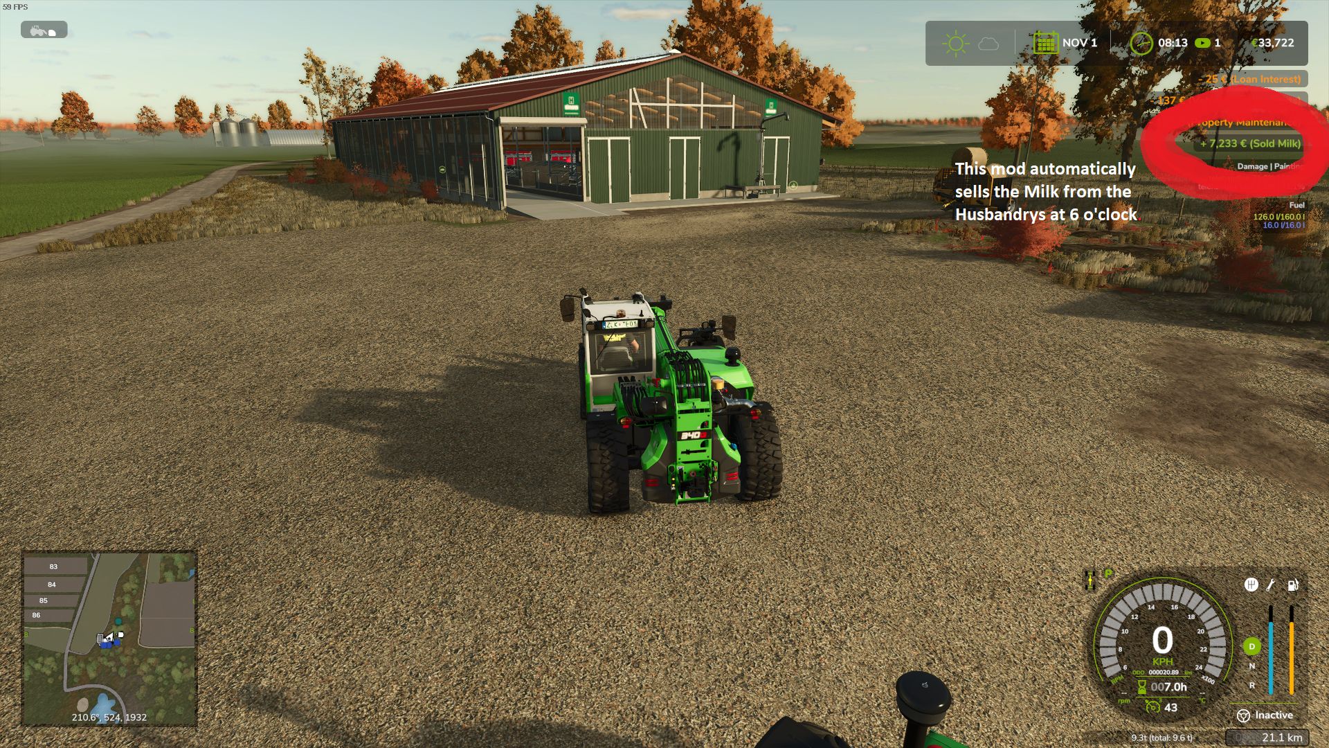 This mod automatically sells the Milk from the Husbandrys at 6 o’clock. The final selling price per liter is calculated from the base price, the difficulty and a seasonal price fluctuation.