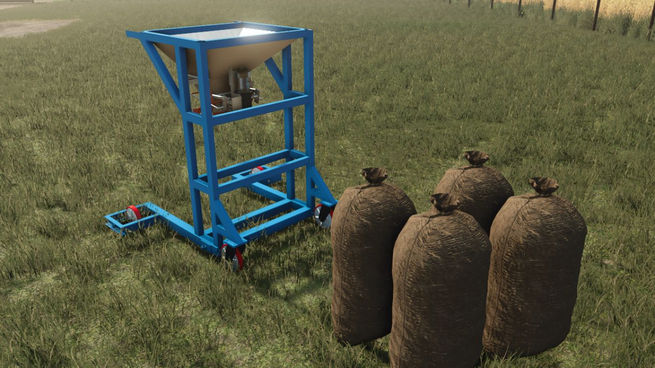 Starting the Process: Once the hopper is filled, press the [B] key to engage the machine and start packing the grain into the bags.