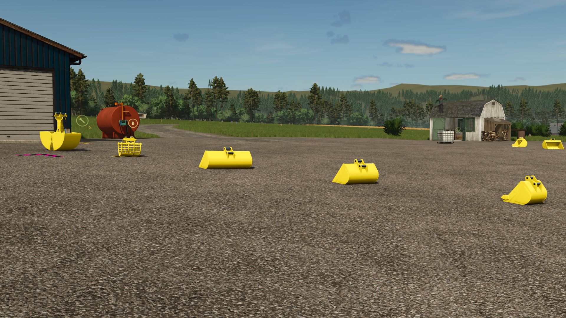 Bucket Pack contains different attachments suitable for mini excavator. Convert from fs22