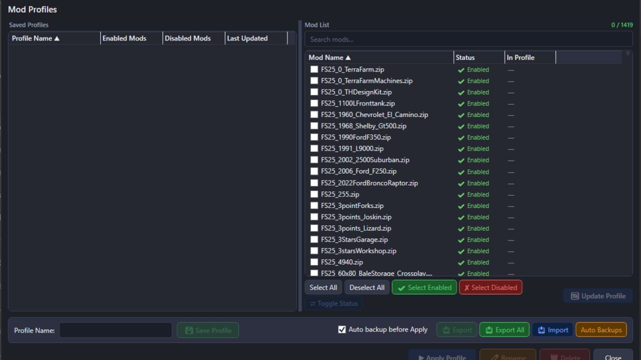 1. ModHub integration has been added. You can now download and update FS25 mods from the Farming Simulator website directly within the program. Settings for enabling ModHub Manager and configuring the download process are available in the Settings window that appears when you first launch the program. If you enable it, the feature will be activated. These settings can be changed later through the Settings menu.