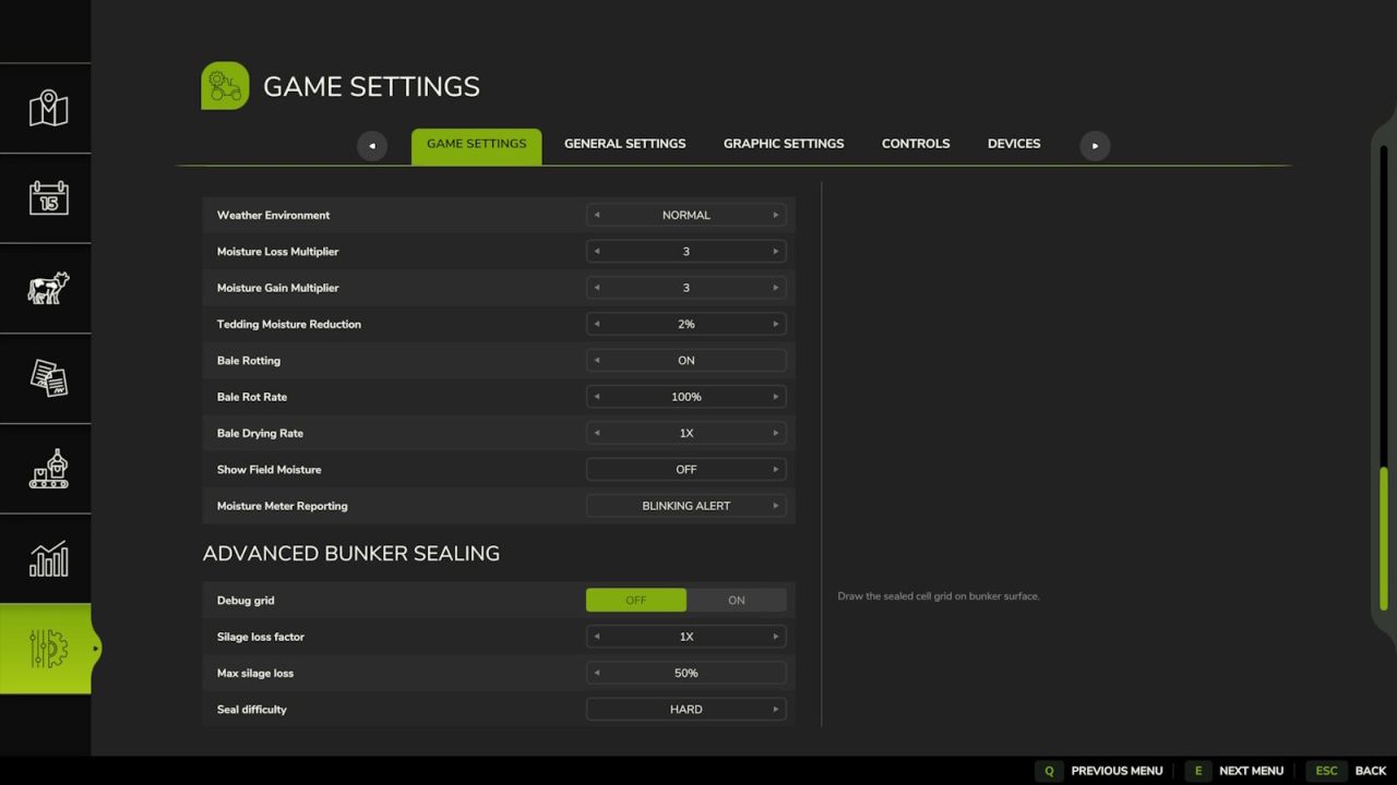 – Seal difficulty (easier modes treat bale placement as more effective, so you need fewer bales for a strong seal).