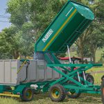 Trailer designed for unloading grapes and olives onto other trailers thanks to its chassis lifting system.