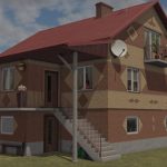 House with the possibility of entering inside, in a colorful style, modeled on Eastern European style. Includes a garage, sleeping space and wardrobe.