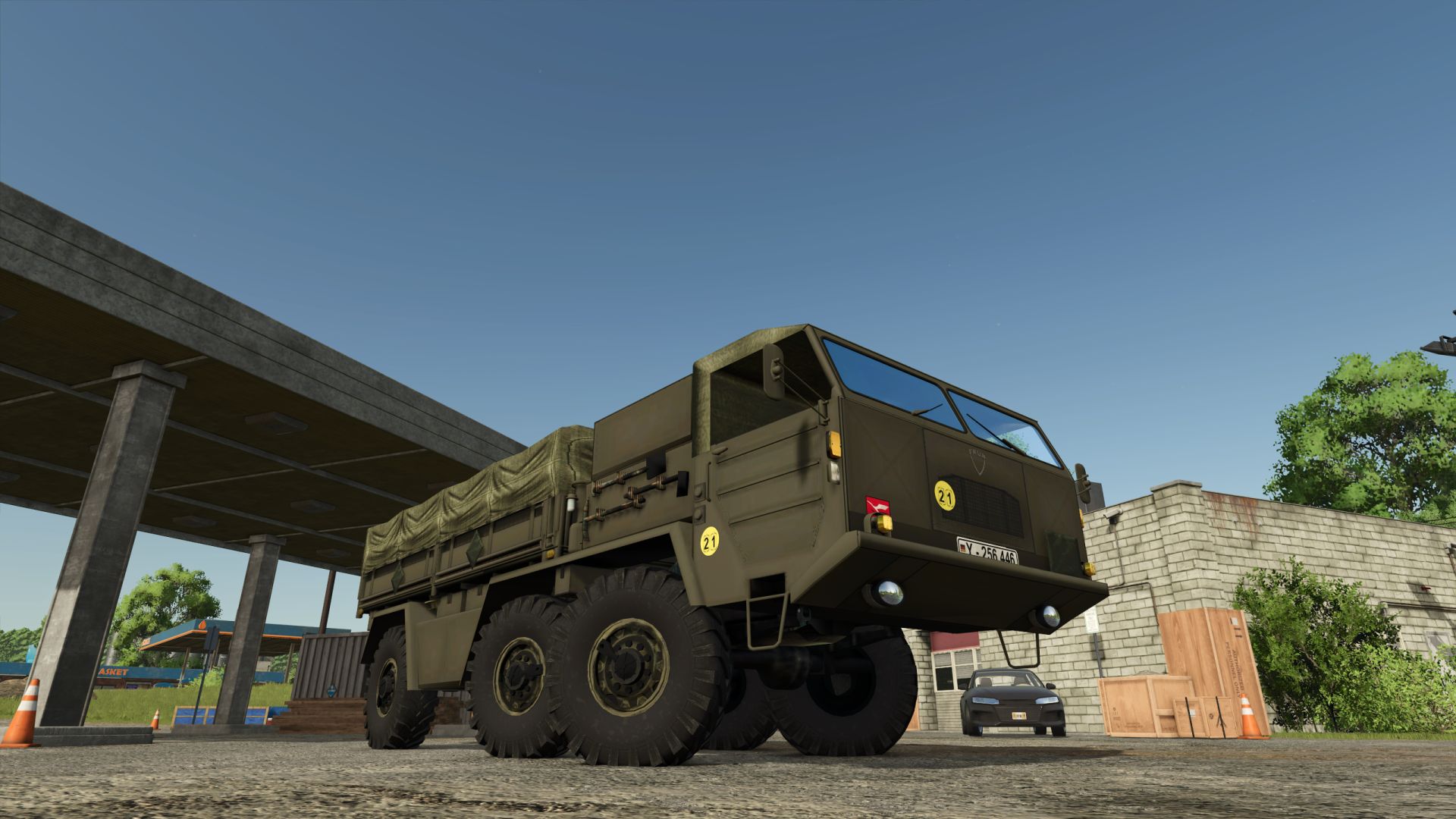 The vehicle is a three-axle, four-wheel drive, long hood (6×6 drive configuration) flatbed truck. Initially, an air-cooled Deutz V12 diesel engine, type F 12 L 614, producing 184 kW (250 hp), was used under the very long bonnet, which comprised almost a third of the total length of the vehicle. From 1961, the also air-cooled Deutz F 12 L 714 A V12 multi-fuel diesel engine was installed, producing 195 kW (265 hp). The two variants could be distinguished externally by their different radiator grilles. To improve engine cooling, the side panels of the hood were often removed [ 2 ] (see image).