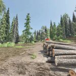 With rugged terrain, winding dirt roads, and a variety of tree species, the map provides an authentic logging experience.