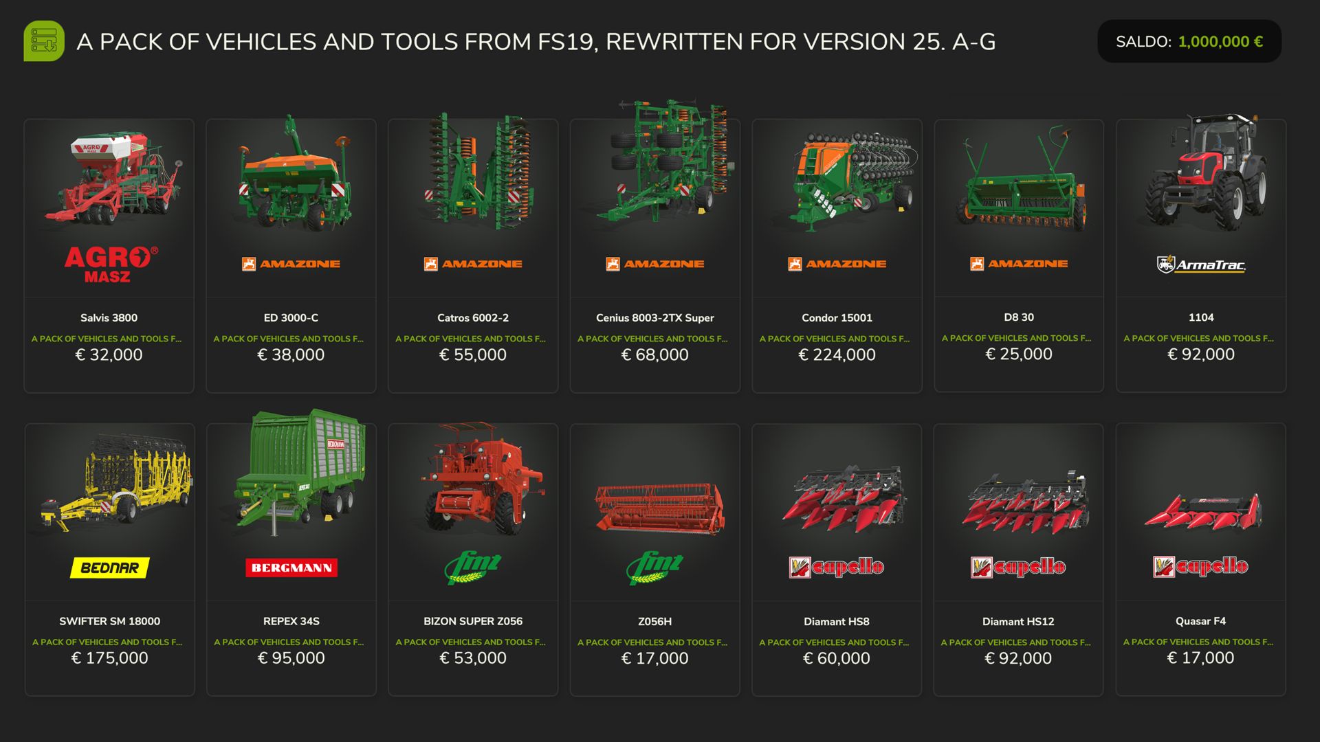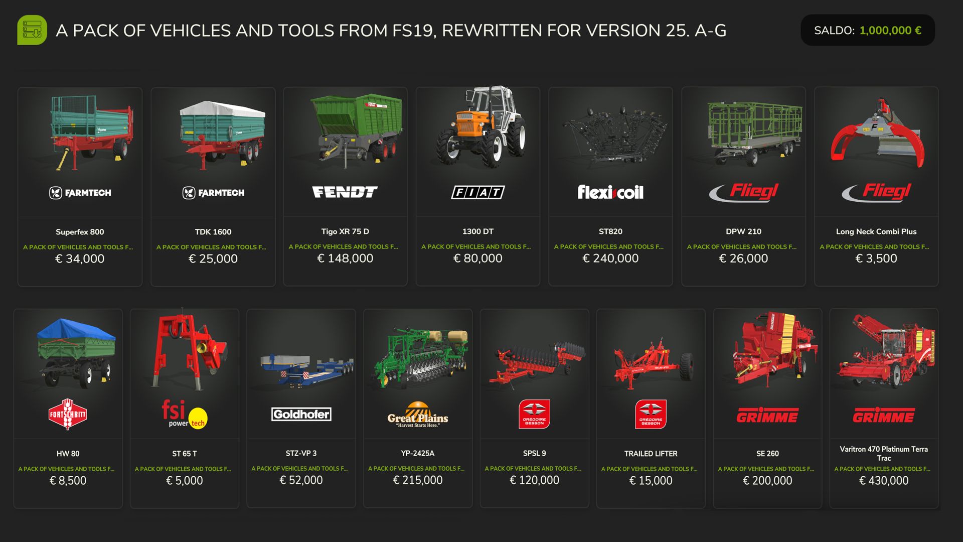– I have adjusted the prices of FS19 machines and vehicles to better match the prices of FS25