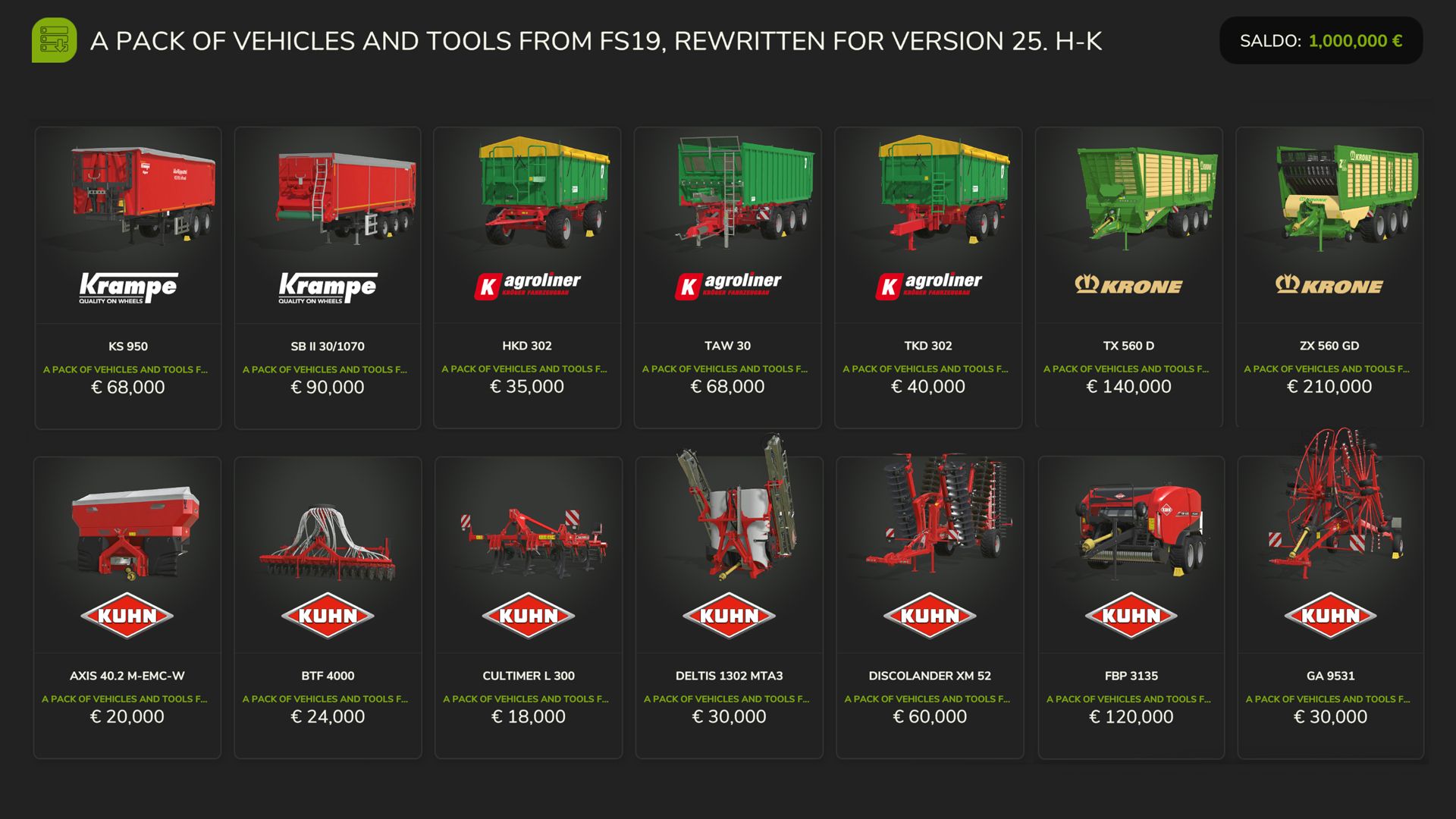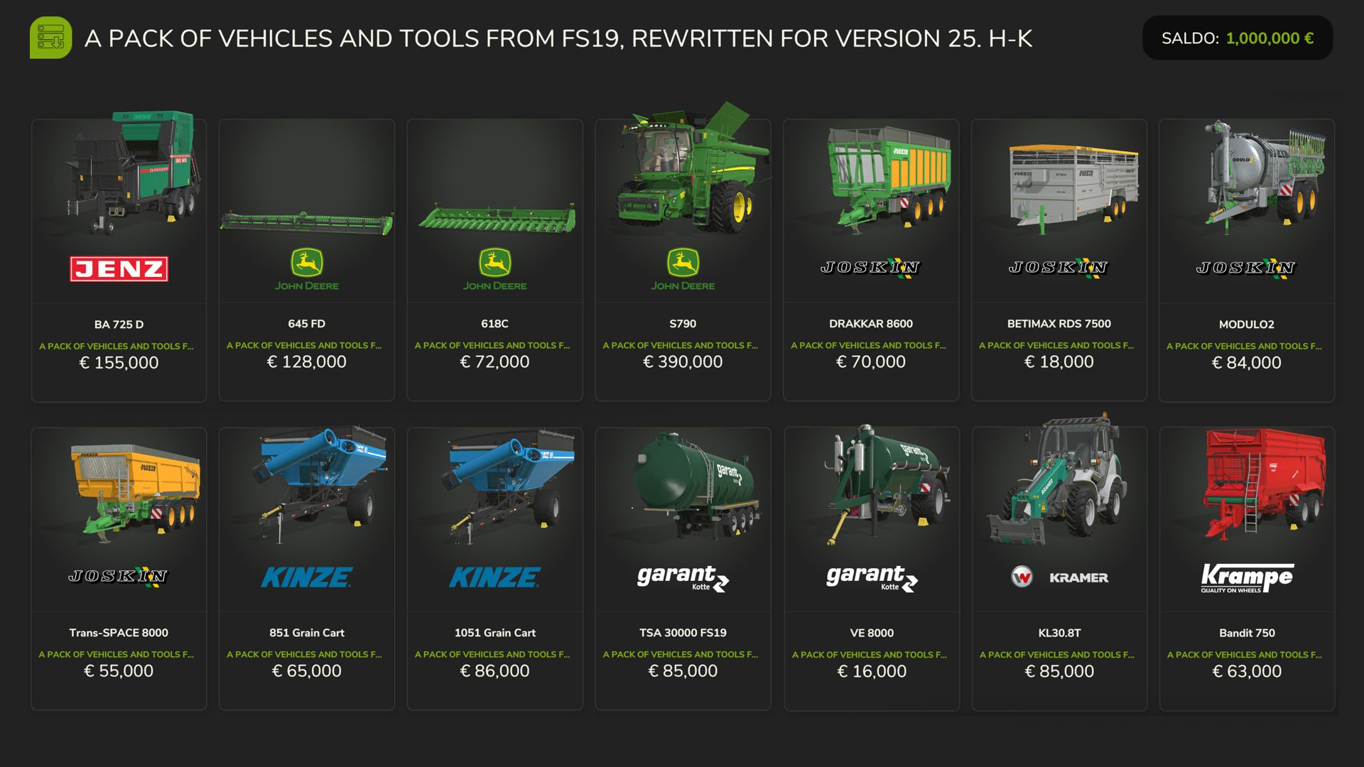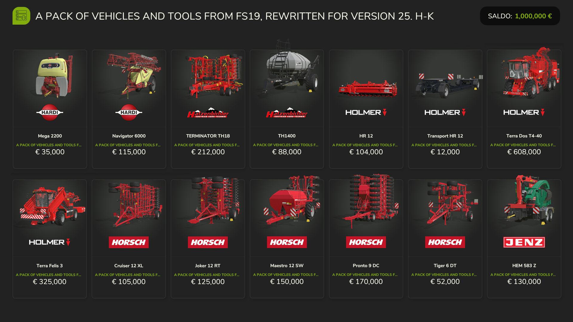 FS19 Vehicles and Tools (H-K) V1.0.0.0 FS25