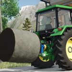 The round bale splitter can be used for unwinding silage, hay and straw bales as well as for transport. Thanks to the compact design, the center of gravity remains close to the tractor.