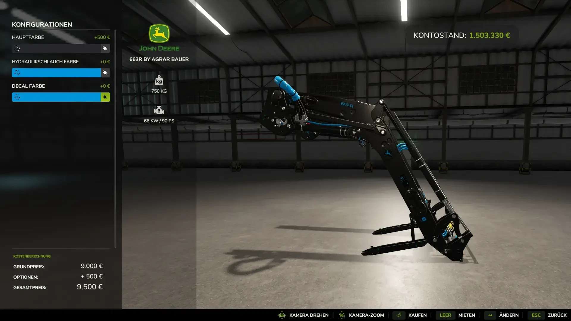 – Selectable hydraulic hose color