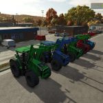 John Deere 7R with front loader in multicolor