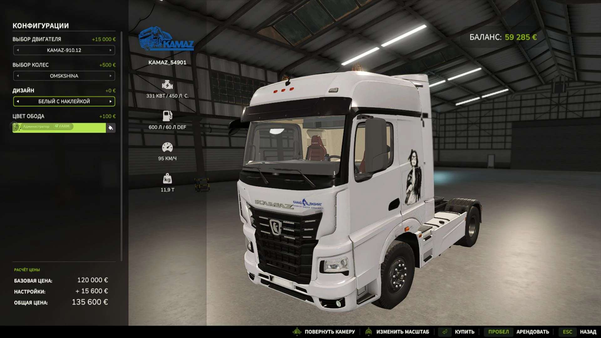 The new flagship of the fifth generation of the KAMAZ K5 series, model 54901, 3D model from ETS 2, converted to FS 17 with errors.