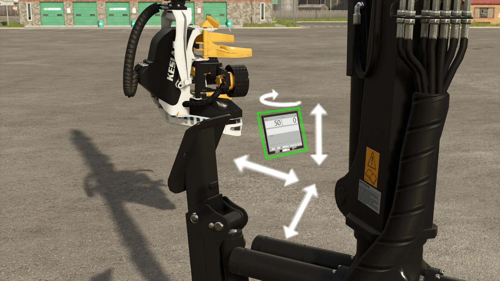 After coupling, a display appears behind the crane, In order to place it visually in the vehicle, it can be moved freely via the 2nd control group.