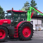 The crane-manipulator unit is designed for fastening and transporting BigBags, as well as fastening containers, pallets, and small equipment, in the presence of a fixed crossbeam. It is aggregated with tractors of traction class 1.4 (MTZ-80/82, YuMZ 6KL) without a fixed traverse, and with tractors 2 and 3 (LTZ-155, T-150k, MTZ-1523) of traction class with a fixed traverse
