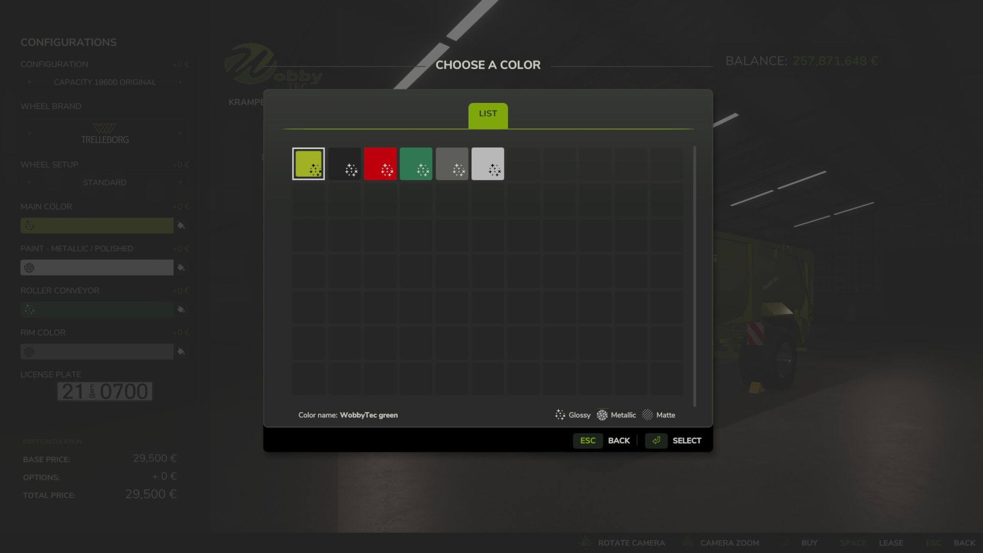 Choice of colors for exterior color, rim color, rolling tape and chassis of the semi-trailer (including original Krampe colors!)