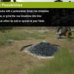 The raw limestone can be grinded into lime for spreading your fields or to be sold for some extra income. These limestone rocks are also useful for construction roleplay.