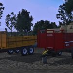 A trailer used by small farmers, consisting of a standard trailer and a screw trailer.