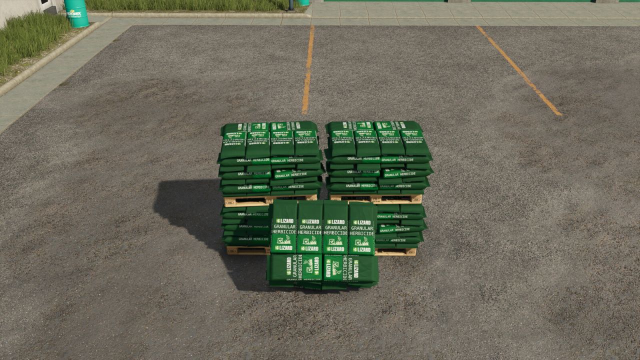 Lizard Granular Herbicide adds a Granular Herbicide Pallet to the in game store, and also adds the ability for traditional solid spreaders to be used for the purpose of weed control.