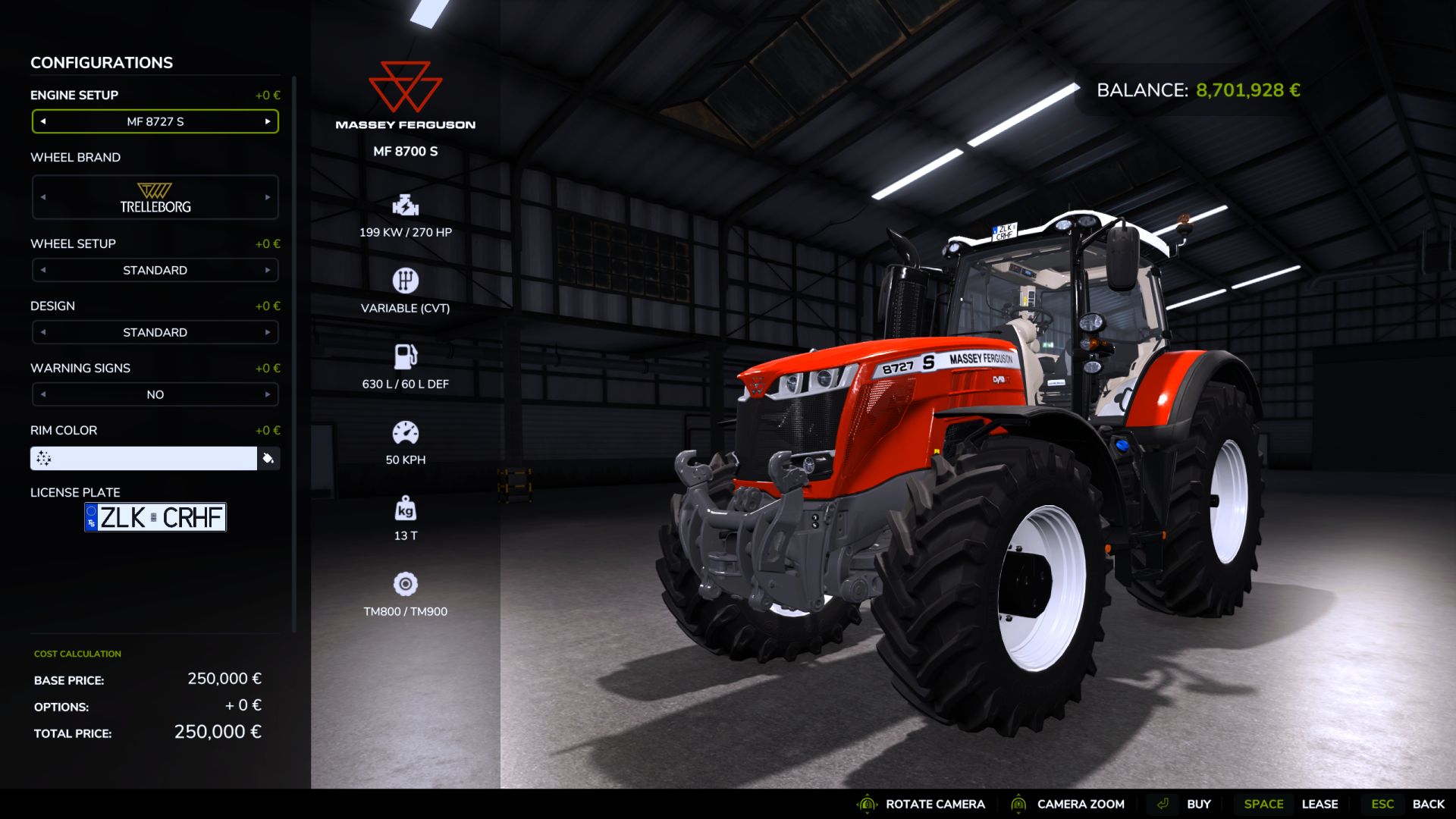 – MF 8727 S (270 hp)