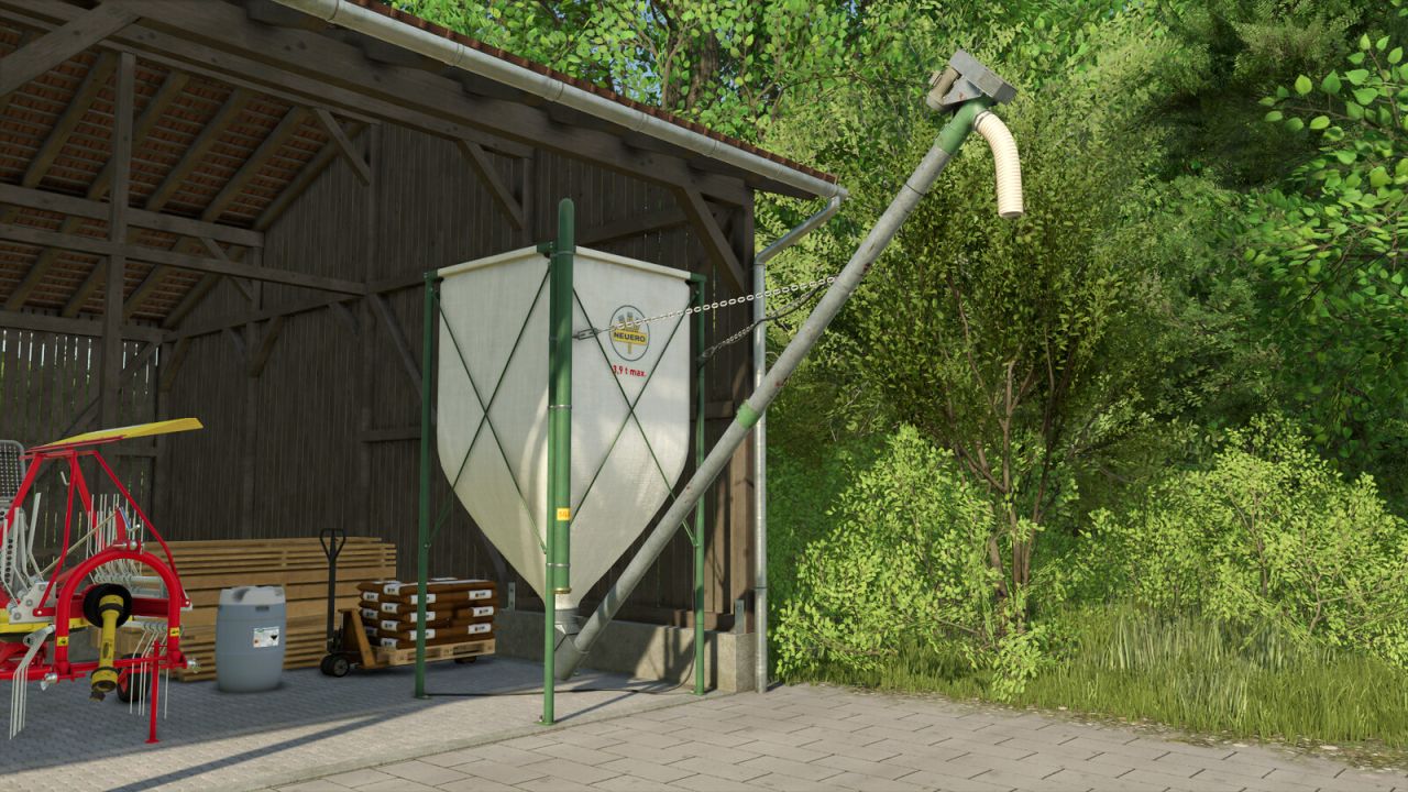 This silo is commonly used on animal farms for the storage of mineral or mixed grain feed. The fill speed under the auger is set to a realistic 600 liters per minute.