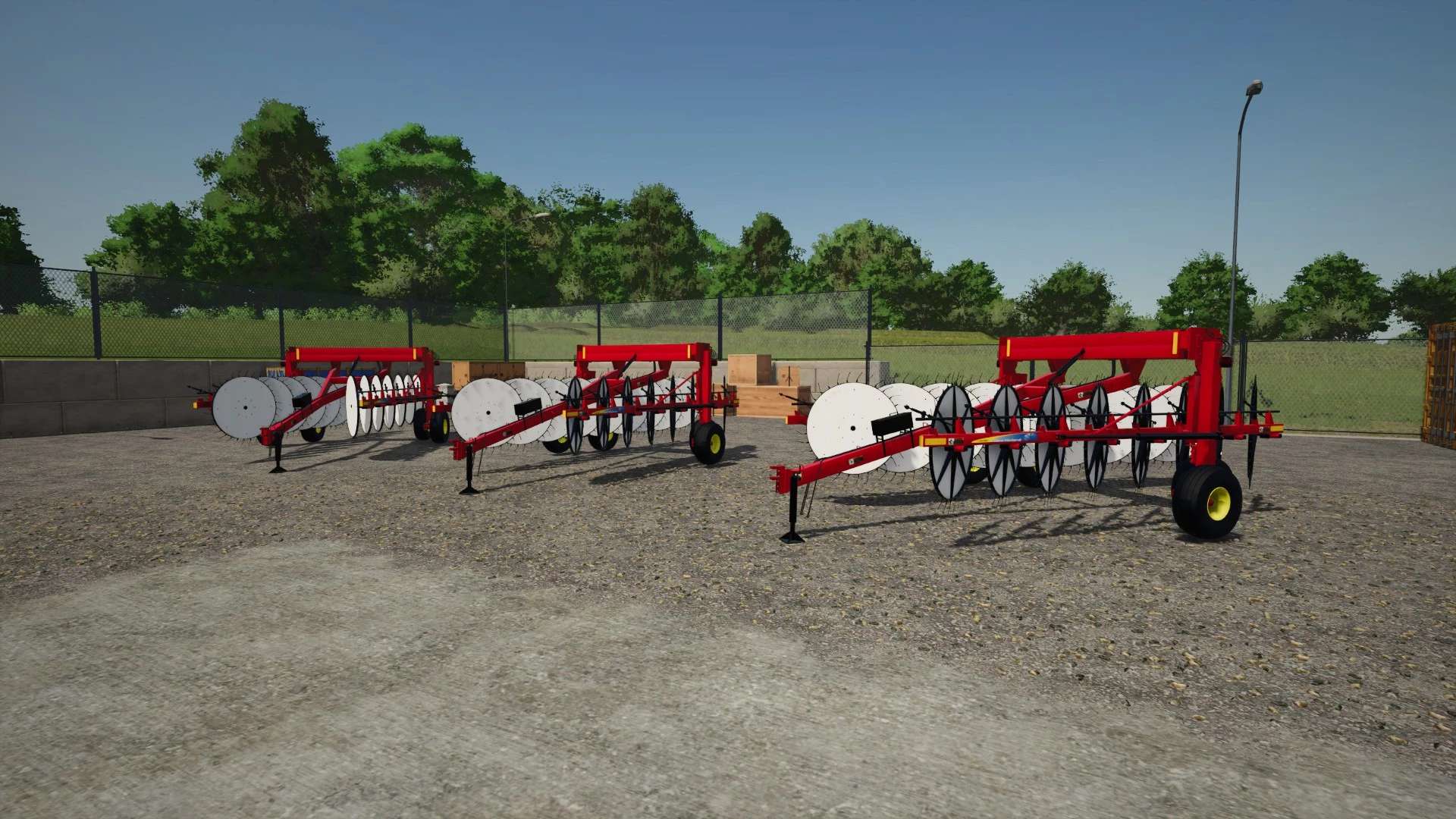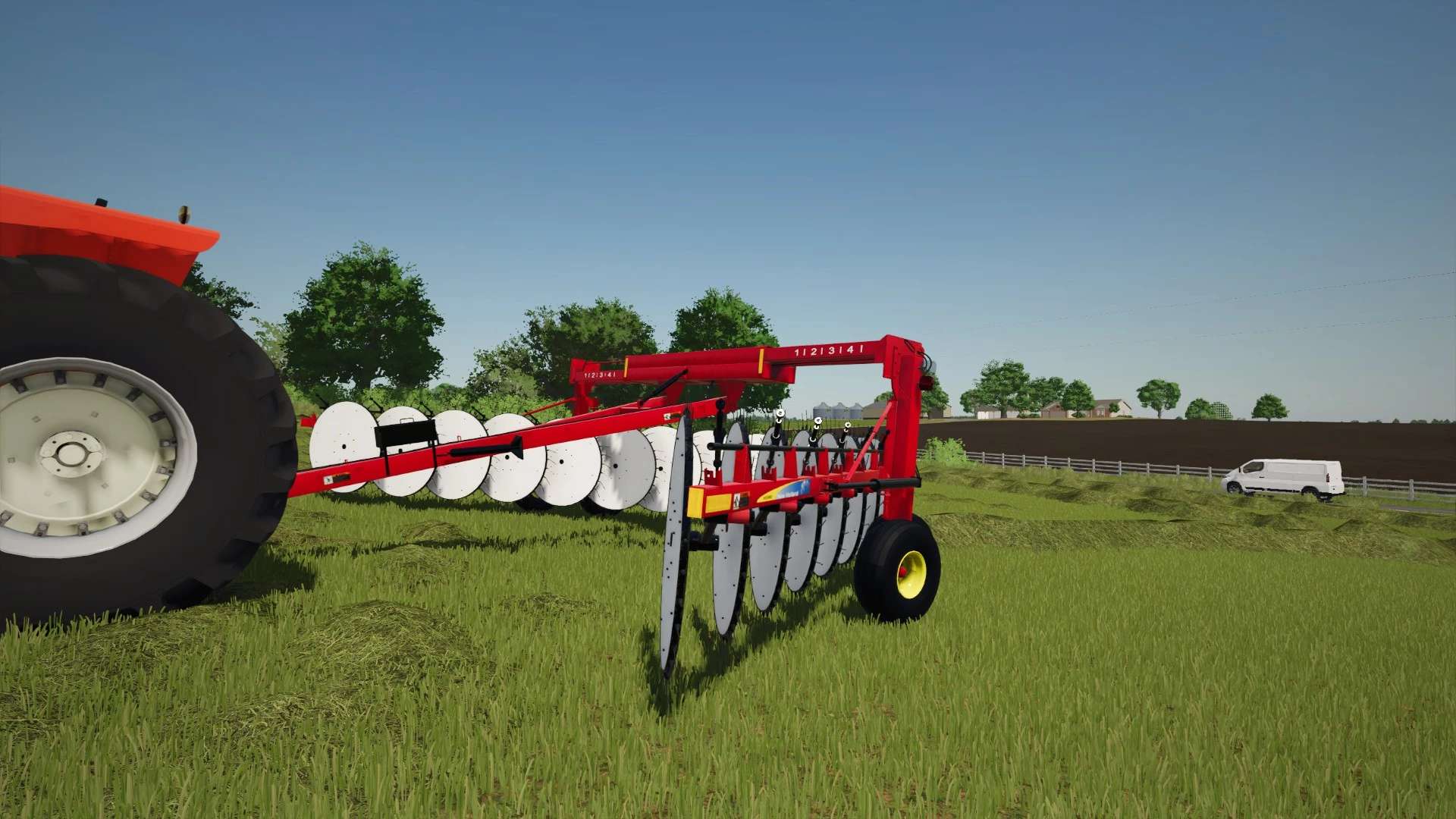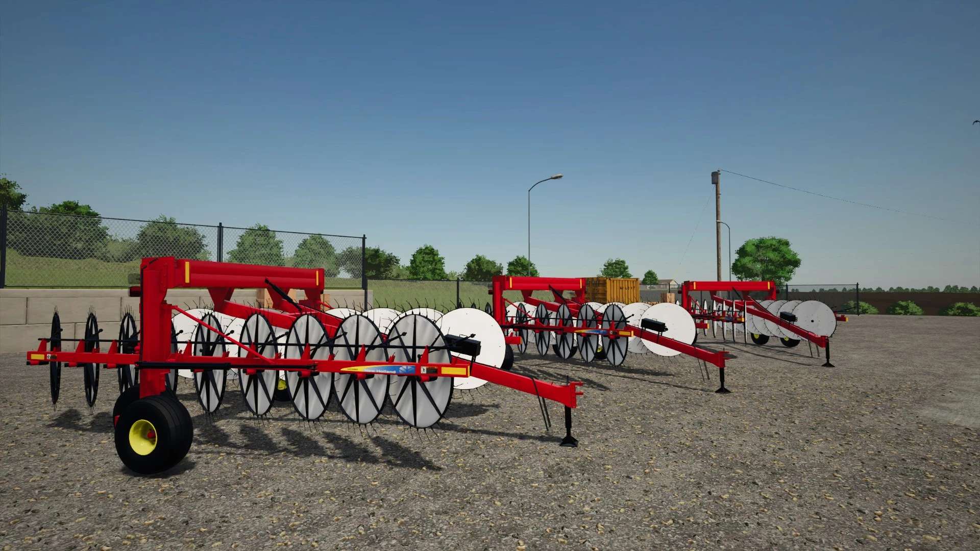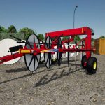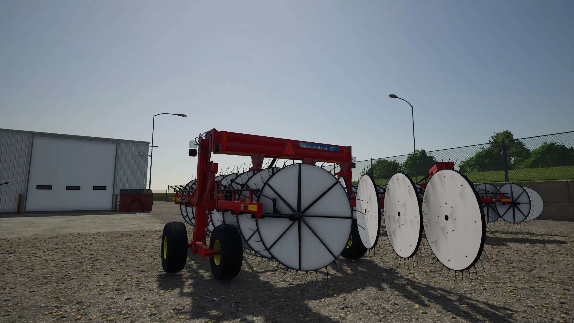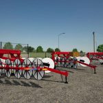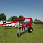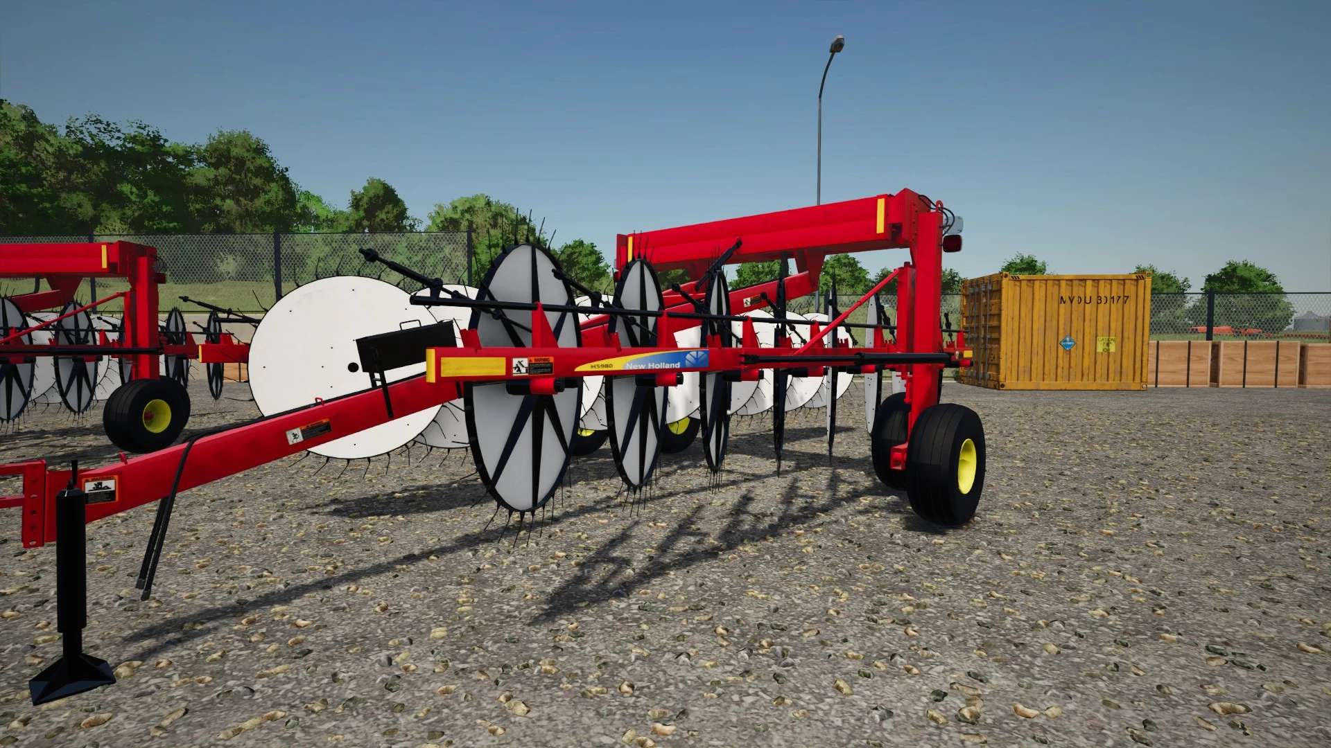 The New Holland H5980 heavy-duty wheel rake is engineered for high-capacity hay operations, offering exceptional performance and versatility. Its offset wheel design features 17 60-inch raking wheels—eight on the left and nine on the right—enabling a maximum raking width of 30 feet without the need for a center kicker wheel. This configuration ensures uniform dry down while maintaining operational speeds of up to 15 mph. The rake’s hydraulic width adjustment allows for windrow widths up to 72 inches, all controlled from the tractor seat. Additionally, the patented mechanical rake beam can be adjusted by up to 10 degrees to match windrow density to crop conditions, enhancing efficiency in varying environments. With features like automatic wheel alignment, custom flotation, and durable construction, the H5980 is designed to deliver consistent, high-quality results across diverse field conditions.
