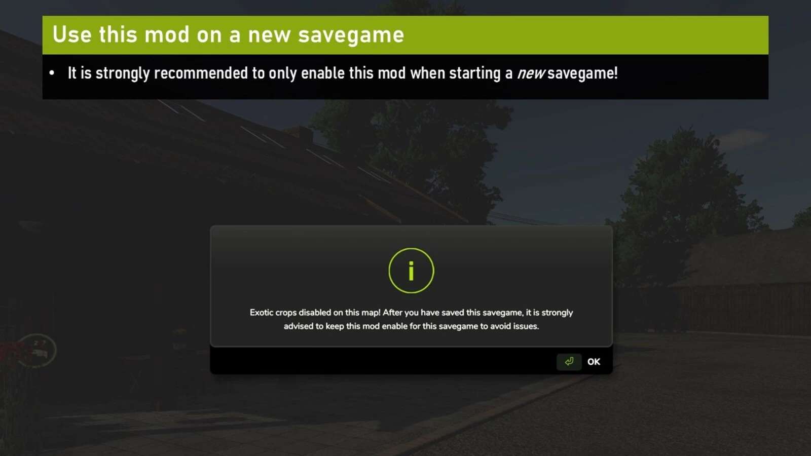 With the mod enabled all “exotic” crops not typically grown in the northern part of Europe will be disabled: