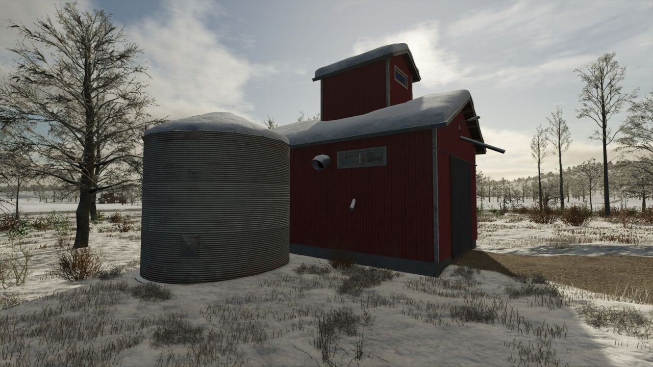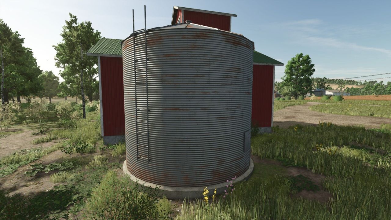 A few old grain dryers from the Nordics. With the lack of moisture and drying of grain in the game, these work like any other silo. There are also a few old-style patinated grain bins to increase capacity.