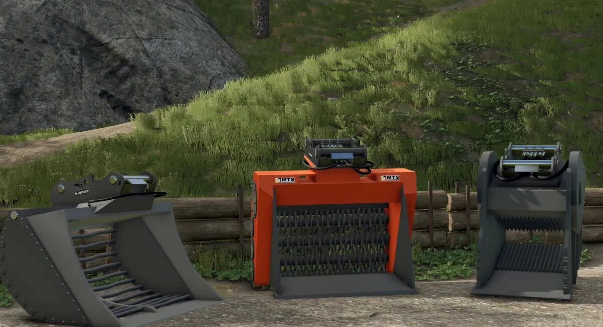 – MTS soil recycler, stone crusher, hydraulic sieve bucket (sugar ->beet, sugar beet pulp, stone -> lime, gravel -> sand, soil -> gravel)