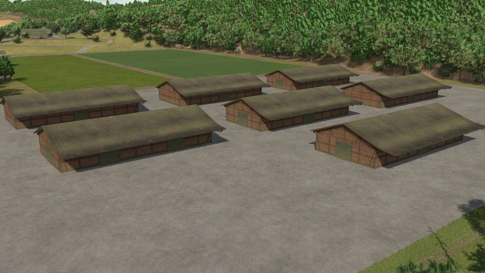 The package contains a total of 7 variations of the hall, each with different door arrangements and bulk storage bunkers.