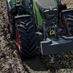 The modification changes the reaction of the wheels located in the groove, slightly reduces their physical contact width with the ground and increases suspension damping. Thanks to this, the tractor is more stable when working with a plow, there is less bounce on the edges of the furrow and it better imitates the behavior of a machine working in a real field.