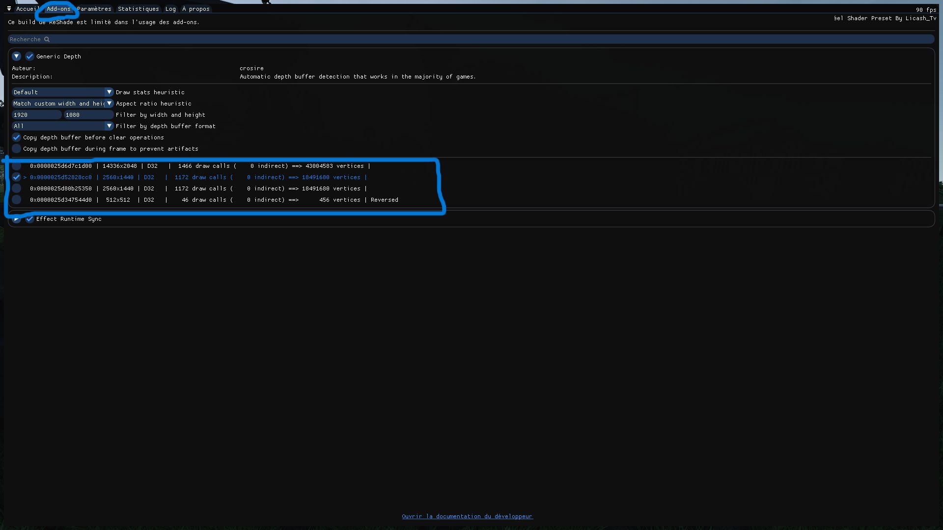 Do not forget to select the resolution in the Reshade page each start of your game!