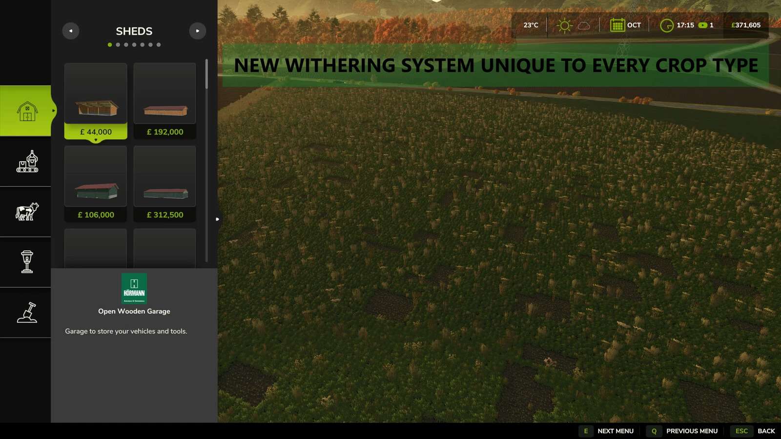 – Adds a moisture mechanic to fields; each type of crop has an ideal moisture range, being inside this range increases harvest yield