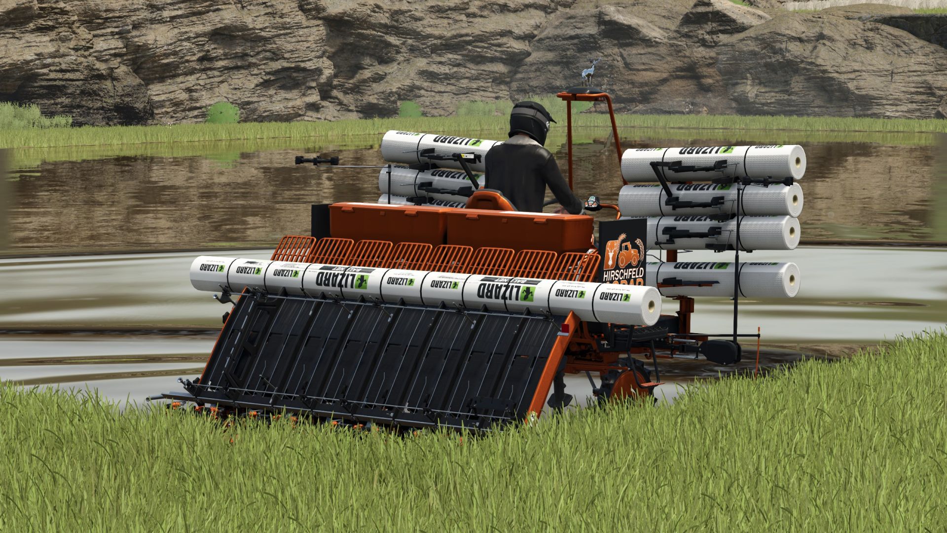 Welcome to rice farming! With this comprehensive rice package, Patrick brings two high-quality machines to your FS25 farm—in the stylish Hirschfeld look, of course!
