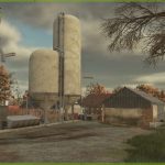 A silo for storing your crops has been added next to the somewhat dilapidated machine shed.
