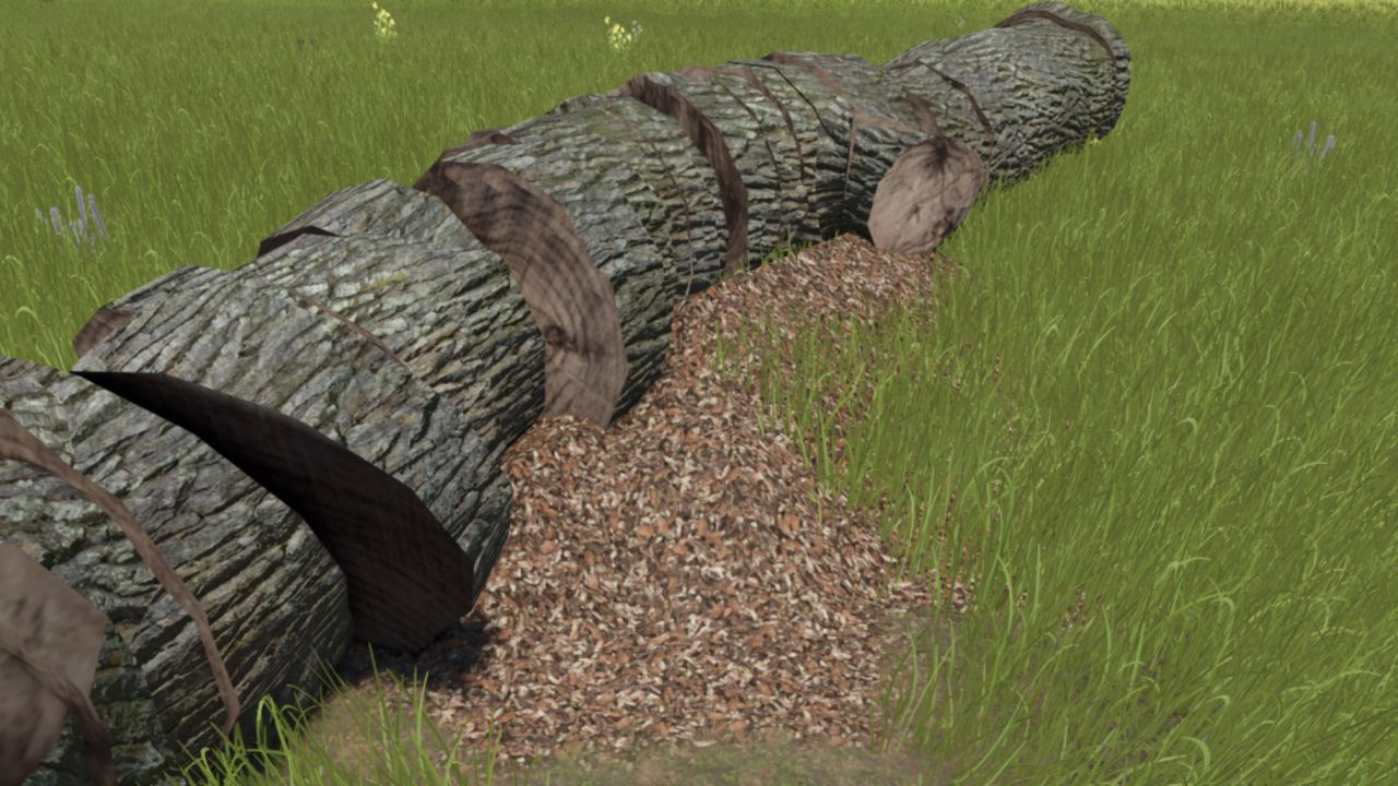 This mod adds realistic sawdust (fine wood shavings) when cutting trees with a chainsaw.