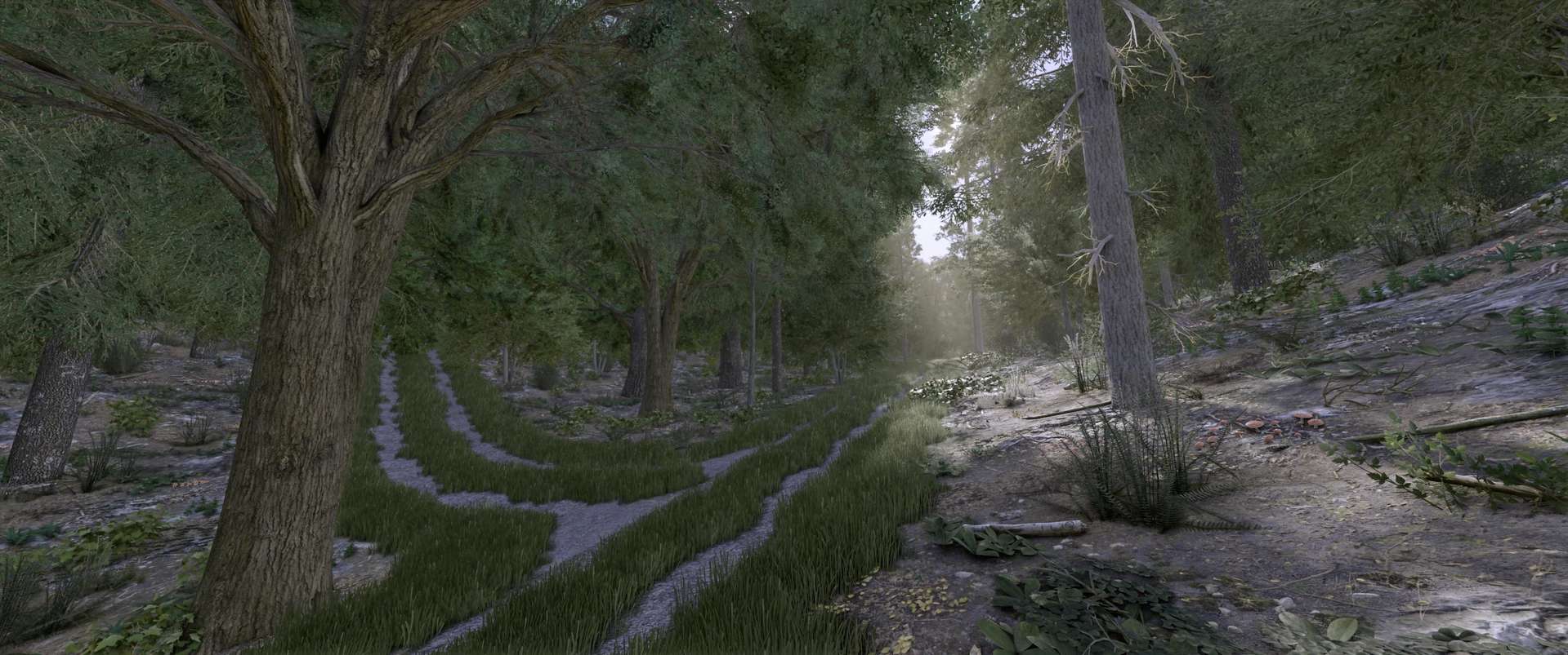 Bushes or grasses that crossed paths have been removed.