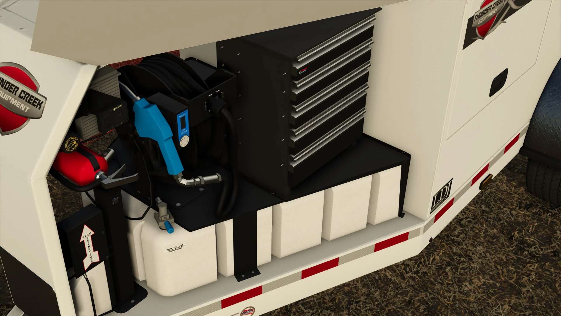 Thunder Creek FST990 with color options and a whole bunch more. This trailer is fully detailed inside, and out! It has a service function and a fuel trailer function (please note you have to turn on the engine for it to fuel, see the picture for location).