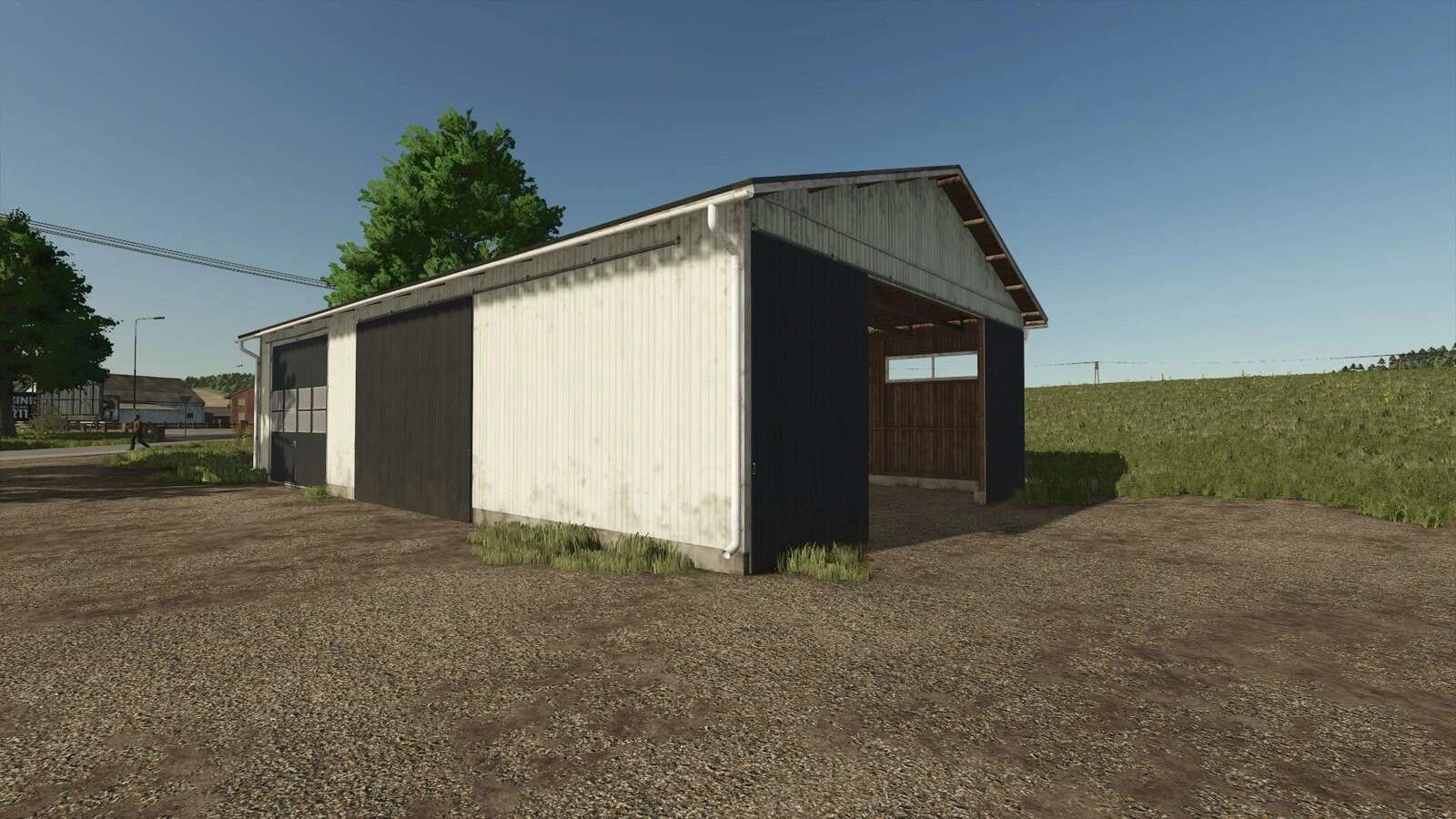 This pack includes two different-sized garages with a variety of door configurations to choose from, as well as three garages that include a workshop where you can modify and service your vehicles on your farm and also store hand tools. There is also a small shelter that can be attached to the side of another building. The wall color of all buildings is freely selectable.